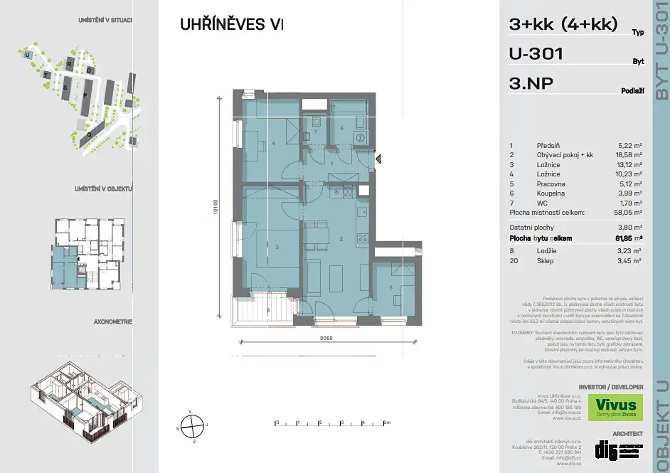 Tento rodinný byt se nachází v právě budované šesté etapě projektu VIVUS UHŘÍNĚVES. V předchozích letech zde bylo vybudováno více jak 1100 bytů, supermarket nebo multifunkční sportovní hřiště.