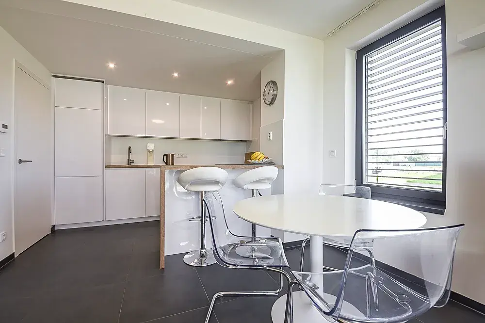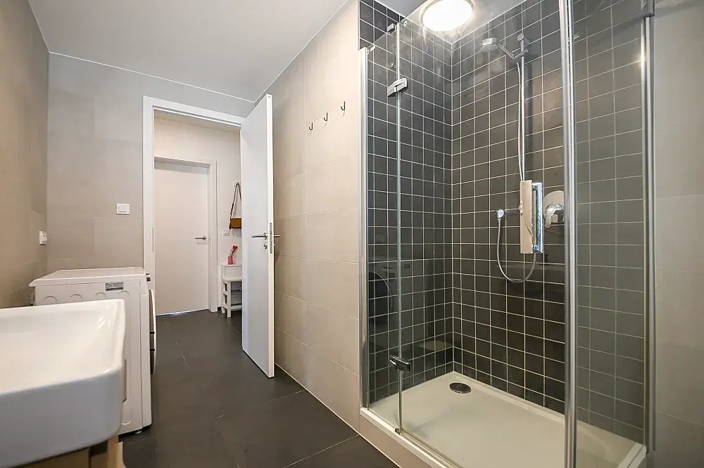 K vysokému standardu vybavení bytu patří kvalitní keramické podlahy, podlahové vytápění v celém bytě v koupelně doplněno otopným žebříkem, okna s izolačními trojskly, bílé interiérové bezfalcové dveře s nadstandardní výškou 2,1 m, koupelna je vybavena zařizovacími prvky značek Laufen, Grohe, a HÜPPE. Byt je dále vybaven velice zajímavě řešenou, na zakázku dodanou, kompletně vybavenou kuchyní s pracovním ostrůvkem a vestavěnými skříněmi od stejného dodavatele.