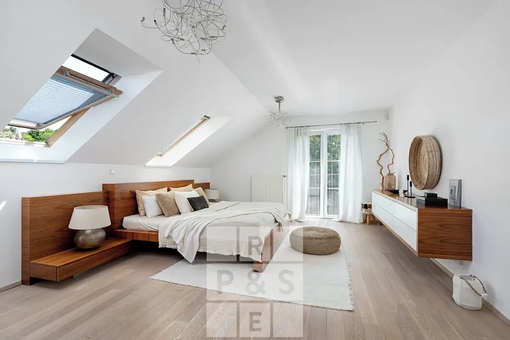 Dominantou domu je téměř 50m² velký, prosvětlený obývací pokoj s francouzskými okny, krbem a vstupem na velkou terasu. Kuchyňská linka s kamennou pracovní deskou, plně vybavená spotřebiči, navazuje na komfortní jídelní kout. Nechybí tři koupelny, velkorysá šatna, domácí kino ani pokoje s balkonem. V domě jsou dřevěné podlahy a schodiště, podlahové vytápění doplněné krbem zajišťuje tepelný komfort po celý rok. Vytápění zajišťuje plynový kotel, elektroinstalace 230 V a 3 fáze s jističem 25 A.