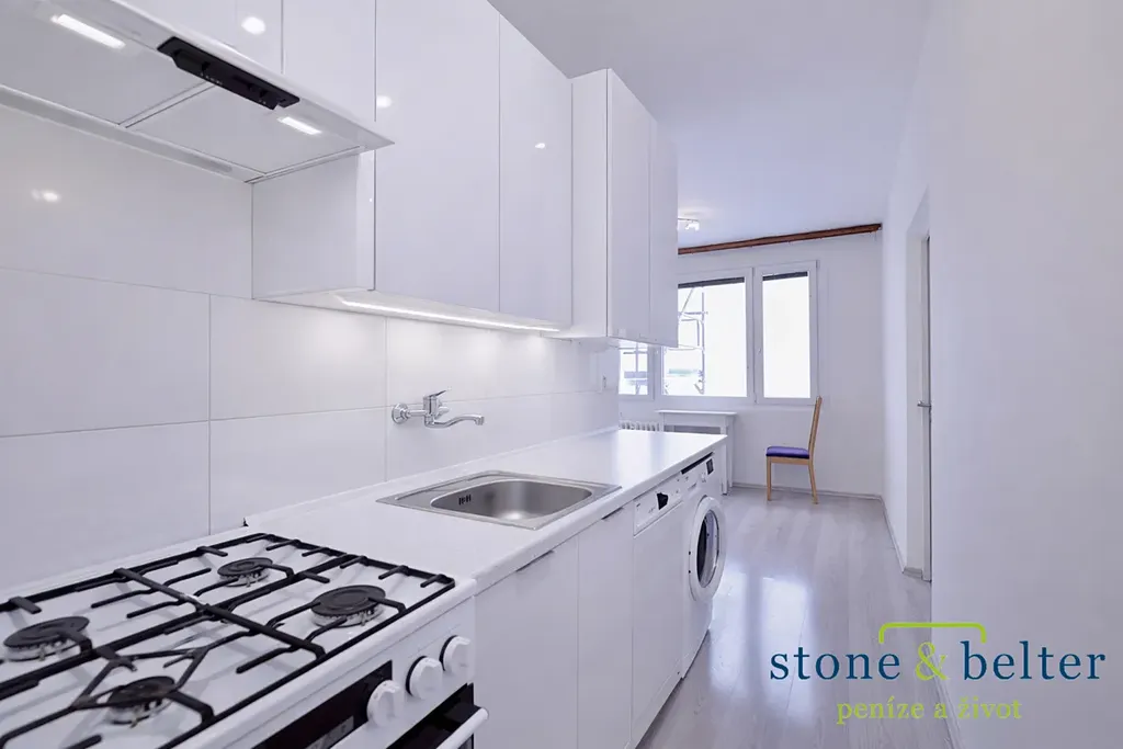 Nabízíme k pronájmu světlý, částečně zrekonstruovaný byt 3+1 s balkonem o velikosti 72 m², který se nachází v 9. patře panelového domu s výtahem. Byt je čistý, je nově vymalovaný a vybavený novými laminátovými podlahami.