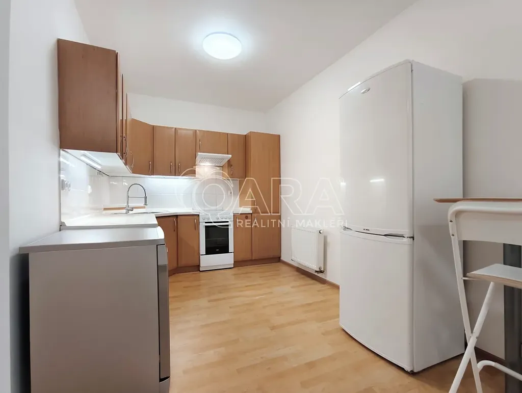 Tento byt má výborně řešenou dispozici danou dvěma neprůchozími ložnicemi vybavenými šikovně vestavěnými šatními skříněmi a samostatný prostorný obývací pokoj s navazujícím kuchyňským koutem. Ten je vybaven kuchyňskou linkou, ve které nechybí ani chladnička s mrazničkou a myčka nádobí. Koupelna disponuje širokým walk-in sprchovým koutem, WC je umístěno samostatně. Součásti vybavení je rovněž pračka.