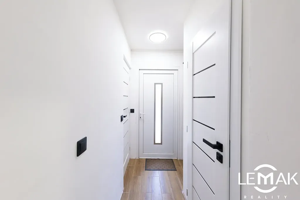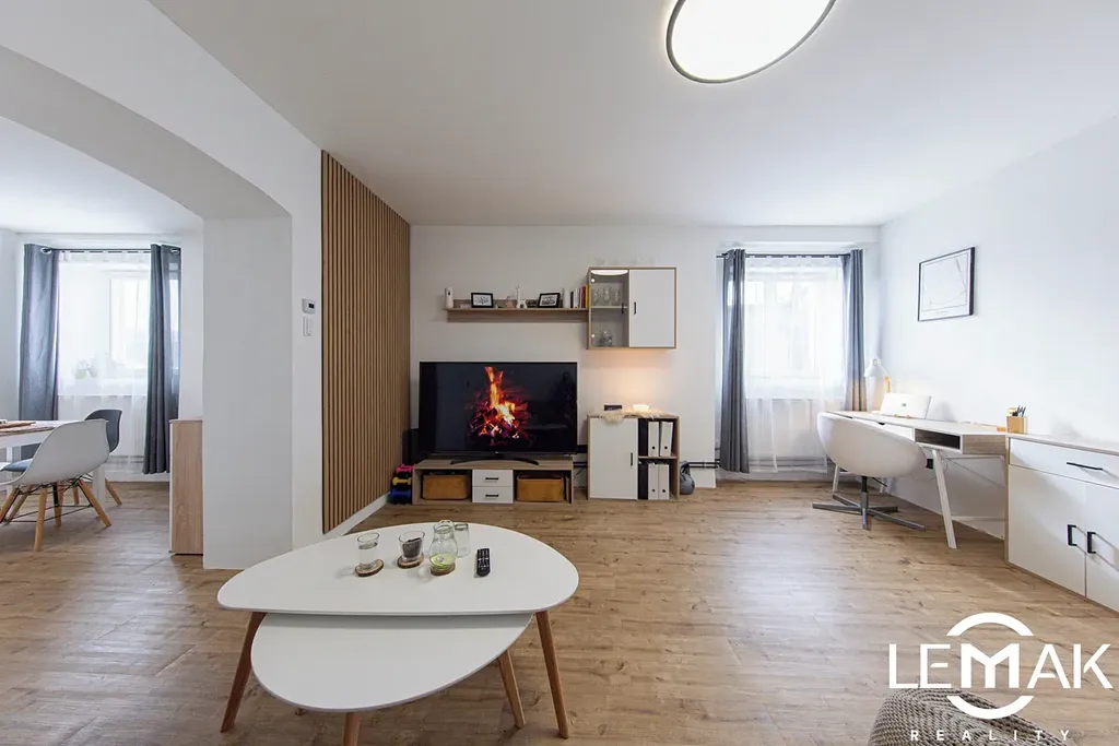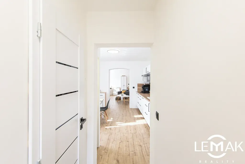 V zastoupení majitele nabízíme k prodeji zcela zrekonstruovaný byt 2+1 v obci Hynkov o celkové výměře 56 m2, který prošel kompletní modernizací v roce 2022. Během rekonstrukce byl byt vybaven novou vinylovou podlahou, moderní kuchyňskou linkou včetně myčky na nádobí, elegantní koupelnou a novou toaletou. Součástí rekonstrukce je také instalace nového elektrického kotle se zásobníkem teplé vody, nového rozvodu elektřiny v mědi, plastových oken a nových omítek. Celkové měsíční náklady bytu pro dvě osoby jsou 3 200 Kč. K bytu náleží spoluvlastnický podíl na zahradě domu, kde lze pohodlně parkovat nebo v letních měsících relaxovat. Výhodou této nemovitosti je také její strategická poloha – přímo před domem se nachází zastávka autobusu, který spojuje obec s Olomoucí a Litovlí. Potraviny jsou situovány ihned vedle domu.