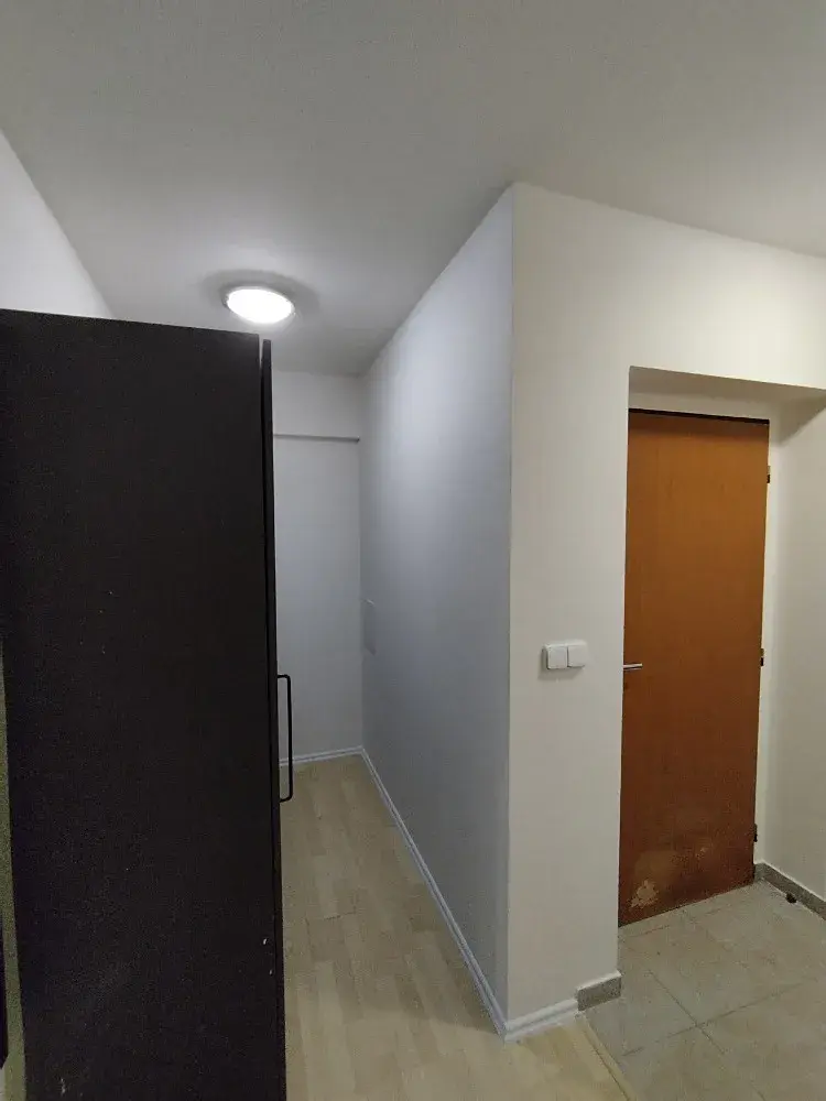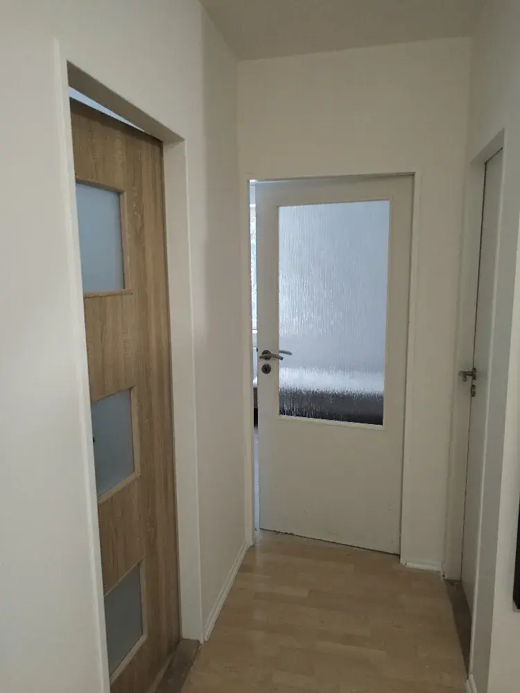 Byt se nachází v prvním patře, jeho dispozici tvoří vstupní chodba, koupelna se sprchovým koutem a WC, obývací pokoj s kuchyňským koutem a samostatný pokoj. Na podlahách je dlažba a plovoucí podlaha. Bytový dům je napojen obecní vodovod a kanalizaci. Vytápění a ohřev teplé vody je řešeno společným plynovým kotlem. K bytu v případě zájmu lze pronajmout parkovací stání přímo před domem za 1.000Kč/měs. Měsíční poplatky jsou hrazené formou paušální platby, požadovaná kauce je ve výši dvou měsíčních nájmů.
