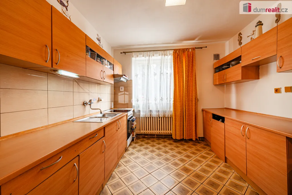 Dumrealit.cz Vám zprostředkuje koupi vícegeneračního cihlového krajního řadového rodinného domu v širším centru Chebu o dispozici 5+1 se zahradou, garáží, sklepem a terasou, který umožňuje přestavbu na dvougenerační bydlení. Dům, který obklopuje pozemek o celkové rozloze 444 m² je vhodný jak pro velkou rodinu tak pro někoho, kdo potřebuje mít u sebe své blízké. Kvalitní cihlová podsklepená budova (postavená před cca 40 lety) se rozkládá ve třech podlažích o celkové rozloze cca 180 m². V přízemí vejdeme z předsíně do chodby a dále do vzdušného obývacího pokoje, který by se dal propojit s kuchyní (nyní je oddělený a kuchyně je samostatná) odkud se vchází na terasu a do zahrady. Kuchyně s jídelním koutem je také velmi prostorná. V přízemí je k dispozici toaleta. V prvním patře jsou čtyři ložnice, z nichž u jedné je balkon, každý pokoj je samostatně přístupný z chodby, je zde koupelna s další toaletou a vanou. V suterénu je velká garáž (pro až 2 automobily), další parkovací místo je před garáží a samozřejmě před domem (před domem může parkovat až 5 automobilů). V okolí je všeobecně dobré parkování. Dále je v suterénu technická místnost s elektrickým kotlem, dílna, sušárna, potravinová komora a další úložný prostor. Ze sklepa je možné vyjít dozadu na zahradu, dům má tedy celkem tři vchody. Nemovitost je velmi dobře udržovaná, byť již vyžaduje modernizaci a rekonstrukci. Střecha je plechová (zateplená), okna jsou původní dřevěná špaletová (v patře jsou dvě nová plastová), radiátory jsou litinové. Budova je napojena na všechny inženýrské sítě včetně plynu (je zaveden na okraj pozemku), elektřiny, vodovodního řadu a kanalizace. K domu náleží zahrada o velikosti 342 m² (plus zastavěná plocha 102 m² - celkem tedy 444 m²), která poskytuje místo pro relaxaci, rostou zde třešně, hrušky a výborná jablka. Dům je ideální svou polohou, v klidné rezidenční čtvrti se slušnými sousedy. V Chebu je veškerá občanská vybavenost včetně OC Pivovarská (Sportisimo, DM, Kaufland, JYSK, Takko, Gate, železářství, Dr. Max, elektro) OC Dragounská (Albert, New Yorker, Tedy), supermarketů včetně Tesca, Sinsay, nádraží, pošty, supermarketů LIDL atd.., nedaleko je také Svatý kříž s mnoha obchody včetně Travel Free. Cheb nabízí kompletně opravené náměstí, kde najdete vyhlášené restaurace Hvězdu či U Krále Jiřího, banky, úřady, obchody, městský úřad, občerstvení apod., příjemně se dá trávit čas v kulturně-historické památce komplexu chebského hradu, na který navazuje vyhlášený krásný sportovní volnočasový areál s parkem Krajinka. V Chebu je několik nádherných kostelů včetně kostelu sv. Mikuláše a Alžběty. Město se nachází 9 km od Německa, kde je jak možnost výhodných nákupů tak finančně zajímavého pracovního uplatnění. Na nemovitosti neváznou žádná omezení, věcná břemena, zástavy ani nároky třetích osob. Cena zahrnuje provizi RK a veškerý právní servis. Ev. číslo: 655174.