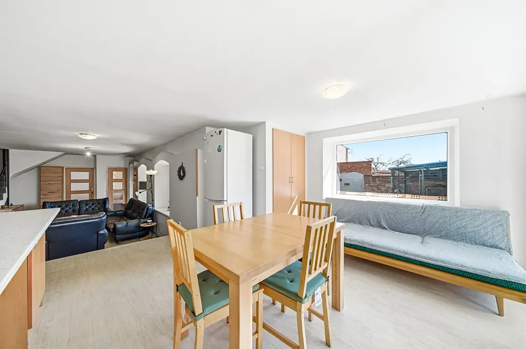 Tento prostorný dům o dispozici 3+kk a celkové užitné ploše 216 m² stojí spolu se dvorem a výměnkem na pozemku o výměře 677 m². K domu dále náleží užitková zahrada o výměře 838 m² a pozemek před domem o rozloze 362 m², ideální pro zřízení okrasné předzahrádky.