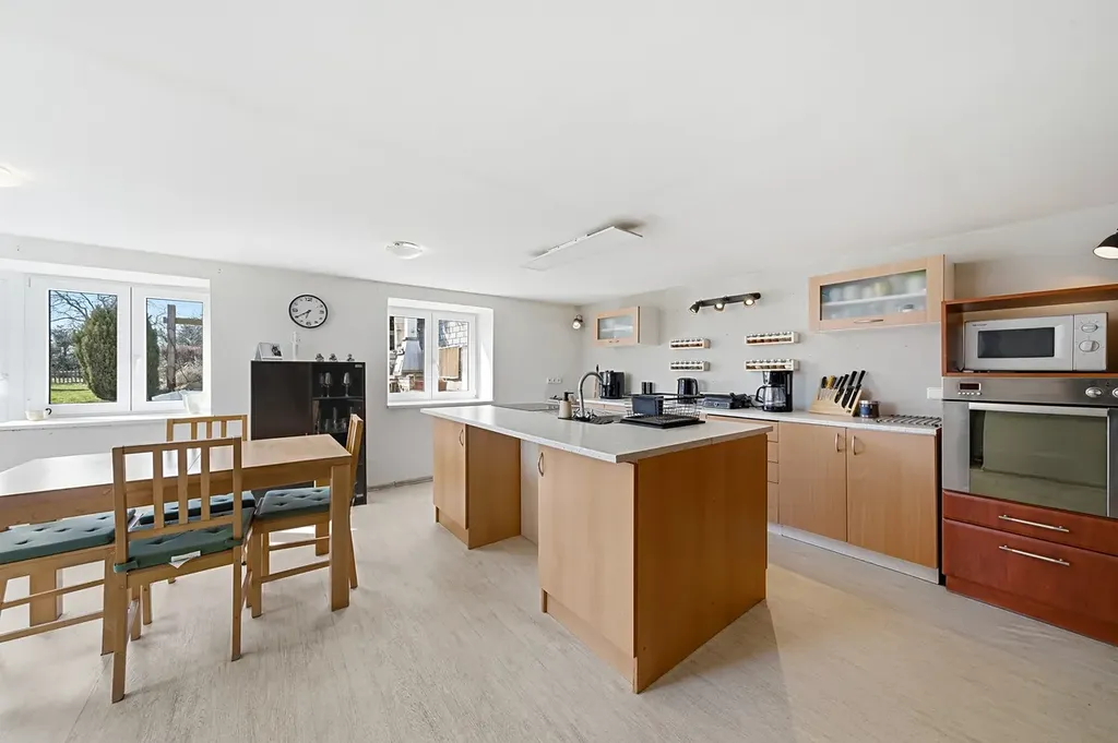 Část stavení orientovanou do ulice tvoří výměnek o dispozici 2+1, kde je zrekonstruovaná kuchyń a vybízí k dokončení podle vašich představ. Součástí zahrady je také stodola sloužící jako velký úložný prostor.