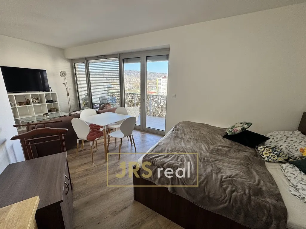 Ve výhradním zastoupení majitele nabízíme k dlouhodobému pronájmu nový a krásný byt o dispozici 1+kk v novostavbě na výborném místě v Brně – Komíně. Byt se nachází ve 3. nadzemním podlaží domu s výtahem a má celkovou plochu 45 m². Součástí bytu je také prostorná lodžie o velikosti 8 m² s pěkným výhledem a uzamykatelná komora (sklep) o velikosti cca 5 m². Dispozice bytu zahrnuje předsíň, koupelnu a obytný pokoj se vstupem na lodžii. Byt je orientován na jihovýchod, což zajišťuje dostatek denního světla. V předsíni se nachází prostorná vestavěná skříň se zrcadly, věšáková stěna, police a botník. Koupelna je vybavena sprchovým koutem, WC, koupelnovým nábytkem, zrcadlovými skříňkami, otopným žebříkem a novou automatickou pračkou. V obytném pokoji je k dispozici manželská postel, stůl a židle. Součástí bytu je nová rohová kuchyňská linka se spotřebiči, konkrétně sklokeramickou varnou deskou, horkovzdušnou troubou, vestavnou lednicí s mrazákem, mikrovlnnou troubou, digestoří a myčkou nádobí. Podlahy v bytě jsou vinylové. K bytu náleží garážové stání a společná kolárna a kočárkárna v podzemí domu. Připojení k internetu a televizní služby si nájemce zajišťuje samostatně, v domě jsou připraveny kabelové přípojky NETBOX. Dům se nachází přímo u tramvajové zastávky, což zajišťuje výbornou dostupnost do centra města, kam se lze dostat přibližně za 10 minut. V okolí je kompletní občanská vybavenost včetně obchodů, škol, školek, sportovišť a kaváren. V blízkosti se nachází také příroda v okolí Brněnské přehrady a lesů, ideální pro volnočasové aktivity. Byt je vhodný pro jednu až dvě osoby a je k nastěhování ihned. Cena nájmu vč. inkasa zahrnuje i garážové stání. V případě zájmu o prohlídku kontaktujte makléře.