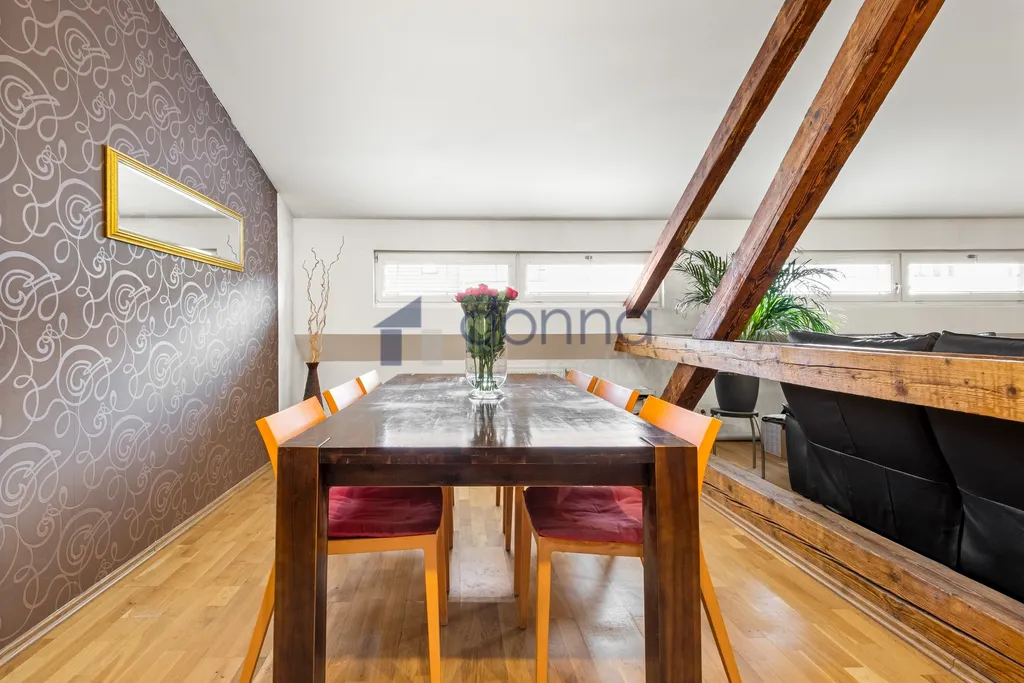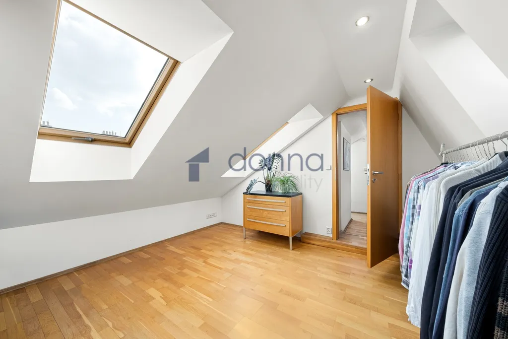 Tento dvouúrovňový byt je umístěný ve 4. podkrovním patře s mezonetem, v cihlovém domě bez výtahu a nabízí zajímavé bydlení v klidném udržovaném domě pouze se šestnácti bytovými jednotkami.