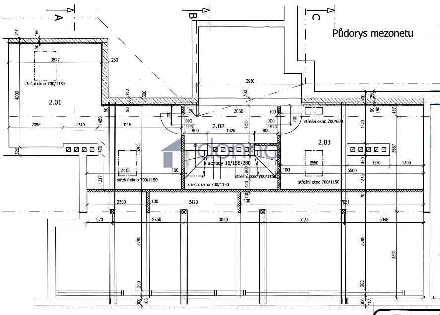 Horní mezonetové patro nabízí 2 samostatné pokoje se střešními okny dodávající přirozené prosvětlení.