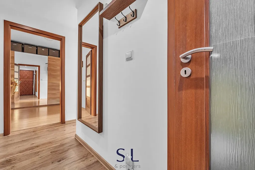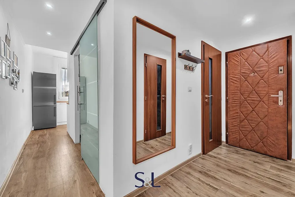 Podlahy jsou kombinací vinylu a laminátu. K bytu náleží také sklepní kóje.