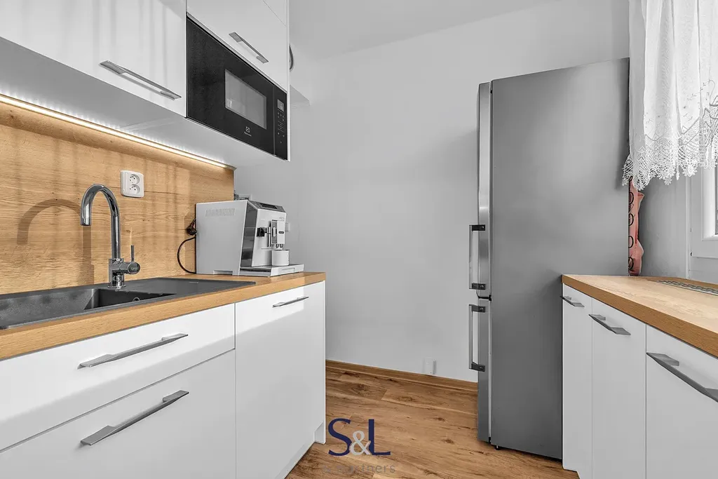 Nemovitost prošla v minulosti rekonstrukcí. Velkou výhodou je moderní kuchyně z roku 2023 s kvalitní kuchyňskou linkou na míru, přičemž se na spotřebiče stále vztahuje prodloužená záruka.