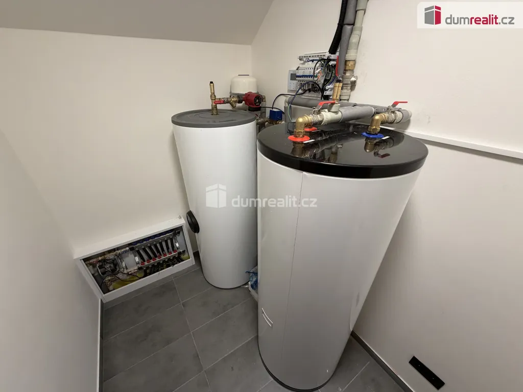 O tepelný komfort a nízké provozní náklady se stará podlahové vytápění napojené na tepelné čerpadlo, okna s trojskly zajišťují výbornou tepelnou i akustickou izolaci. V obytných místnostech jsou položeny kvalitní vinylové podlahy, v zádveří a koupelnách praktická dlažba. Interiér laminátové dveře a zárubně v dřevěném dekoru s černým kováním a moderní zásuvky a vypínače. Velkým benefitem je také instalovaný nerezový komín, který umožňuje bezproblémovou instalaci krbu nebo krbových kamen.