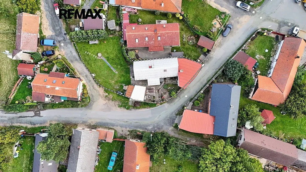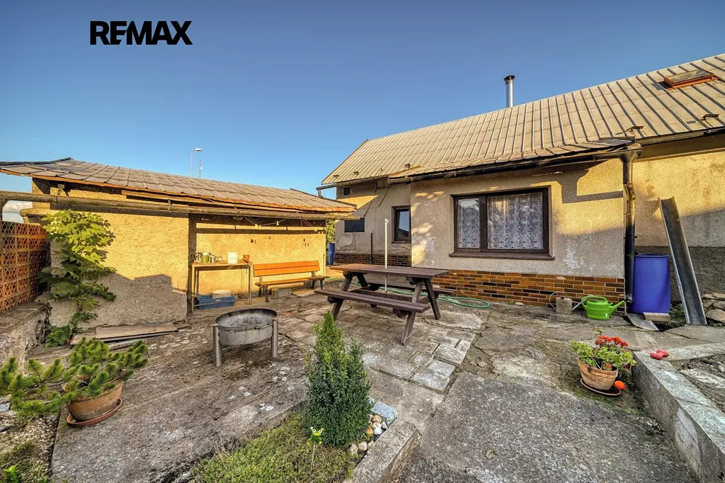 Na dvoře se nachází sklad, dílna, prostor pro posezení i zahradničení. V blízkosti domu je garáž, která nabízí další úložný prostor nebo parkování.
