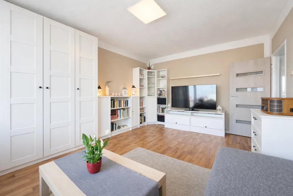 Byt prošel rekonstrukcí přibližně před 18 lety a jeho stav dnes odpovídá době užívání. Interiér bytu již v některých částech nese stopy času a užívání, což nabízí novému majiteli možnost úprav dle vlastních představ. Dispozici tvoří předsíň, koupelna s toaletou, kuchyně s rohovou kuchyňskou linkou a tři pokoje, přičemž k jednomu z nich náleží lodžie. Samozřejmostí jsou plastová okna. Byt je možné ponechat i se zařízením, případně bude předán vyklizený – vše dle dohody.
