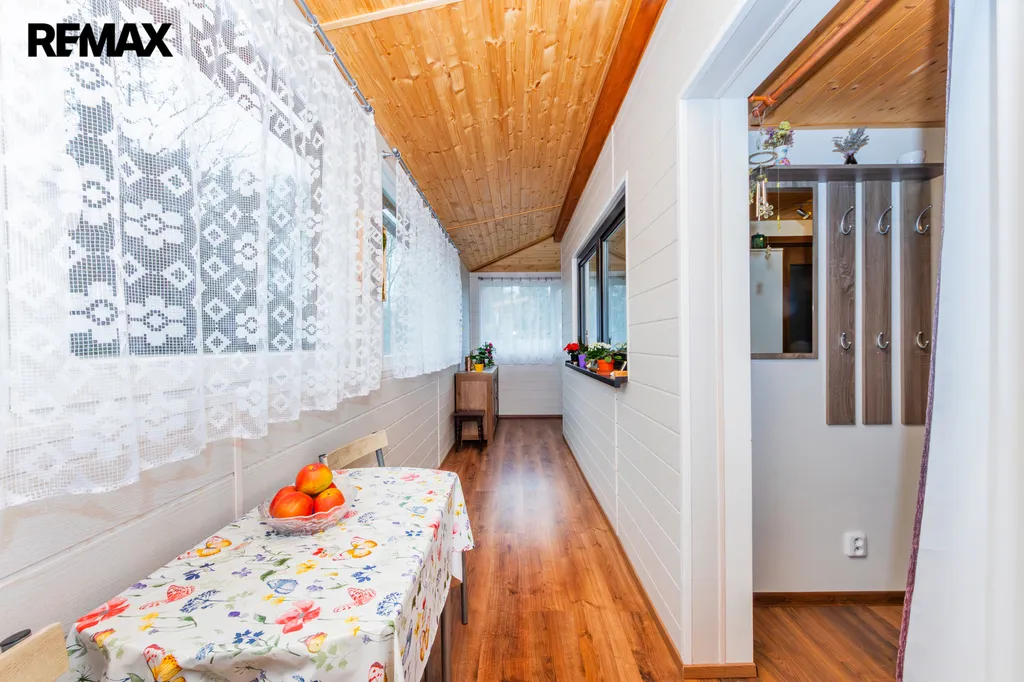 Chata byla postavená na klíč specializovanou firmou v roce 2020. Dispozičně je řešena velmi prakticky - vstupní předsíň plynule navazuje na verandu, která byla stavebně upravena a plnohodnotně začleněna do obytného prostoru. Dále vstupujeme do útulného obývacího pokoje, který je prakticky propojený s kuchyňským koutem, na který navazuje koupelna se sprchovým koutem a toaletou. Po točitých schodech se dostaneme do patra, kde jsou situovány dvě ložnice.
