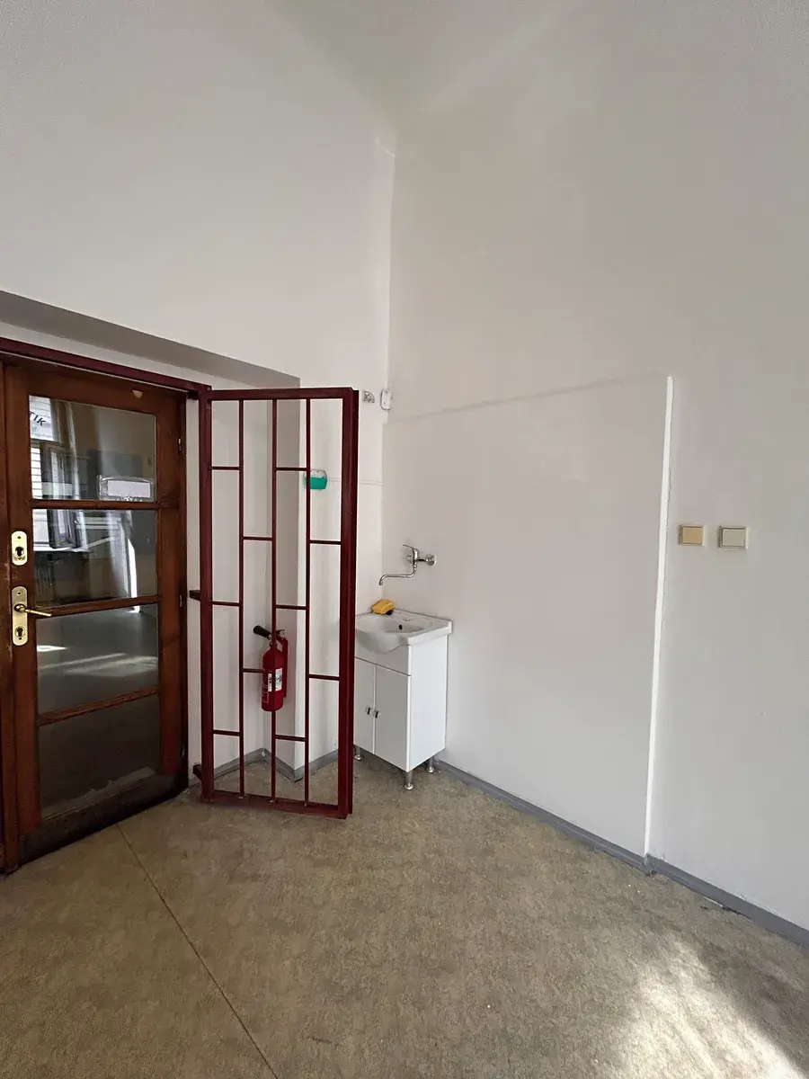 Prostor se nachází v přízemí budovy s velmi dobrou dostupností. Vstup do jednotky je z chodby domu, v těsné blízkosti hlavního vstupu (nikoli přímo z ulice), což nabízí klidnější prostředí při zachování výhod centrální lokality. Samotný prostor disponuje oknem orientovaným do ulice, díky čemuž je příjemně prosvětlený.