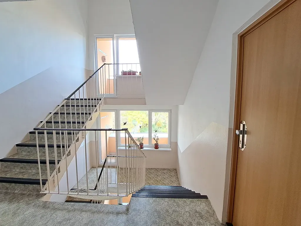 V bytovém domě jsou v mezipatrech společné lodžie a parkování pro auta je možné na parkovišti před domem, kde je dostatečný počet parkovacích míst.