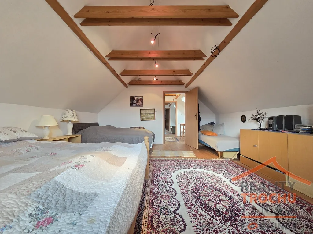 Nabízíme k prodeji rodinný dům 4+1 v malebné obci Nadslav. Tento patrový, prostorný rodinný dům, postavený pouze z kvalitních materiálů v roce 2005, má cihlovou konstrukci. Disponuje 4 pokoji, kuchyní s jídelnou, což poskytuje dostatek prostoru pro velkou rodinu a nachází se na konci slepé ulice v obci Nadslav, kde svým umístěním nabízí budoucímu majiteli absolutní soukromí, kde je pouze jeden soused. Nemovitost má kombinaci dřevěného obložení a pískovce. Předmětem prodeje je i veškeré vybavení. Obrovský pozemek o rozloze 3000 m² poskytuje dostatek prostoru nejen pro komfortní bydlení, ale i pro různé volnočasové aktivity či zahradní úpravy podle vlastních představ. Rovněž je územním plánem určen k zastavění. K domu náleží další nově postavená stavba. Stodola s dvougaráží (28 m2) a třemi oddělenými a samostatně uzamykatelnými místnostmi (13, 13 a 18 m2). V přízemí je dispozice 1+1 s koupelnou, WC, technická místnost a sklad. V patře jsou tři pokoje. Vytápění řešeno dvěma krbovými kamny, které bez problémů vytopí celý obytný prostor. Ve všech místnostech jsou dále nainstalovány elektrické přímotopy (možno regulovat dálkově prostřednictvím internetového připojení). Voda je z obecního řádu (je také možné využívat kopanou studnu před domem - dříve napojena na dům). Odpad je řešen tříkomorovým septikem s přepadem. K domu náleží také veškeré vybavení včetně venkovního bazénu, sauny a automatické sekačky Husqvarna, která kvalitně poseká celou zahradu. Na zahradě najdete kromě okrasných stromů také vzrostlý ořech, 2 třešně, višeň, broskvoň, hrušeň, jabloň a švestku. Celý prostor je střežen kamerovým systémem napojeným na internet. Lokalita nabízí klidné, nerušené bydlení kousek od Jičína, kde je veškerá občanská vybavenost. Ideální pro milovníky turistiky, cykloturistiky. Doporučujeme, financování zajistíme.