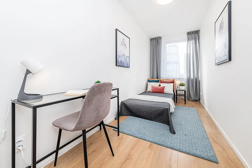 Dispozici bytu tvoří tři neprůchozí ložnice, velkorysý obývací pokoj spojený s kuchyní, prostorná koupelna se sprchovým koutem a samostatný záchod.