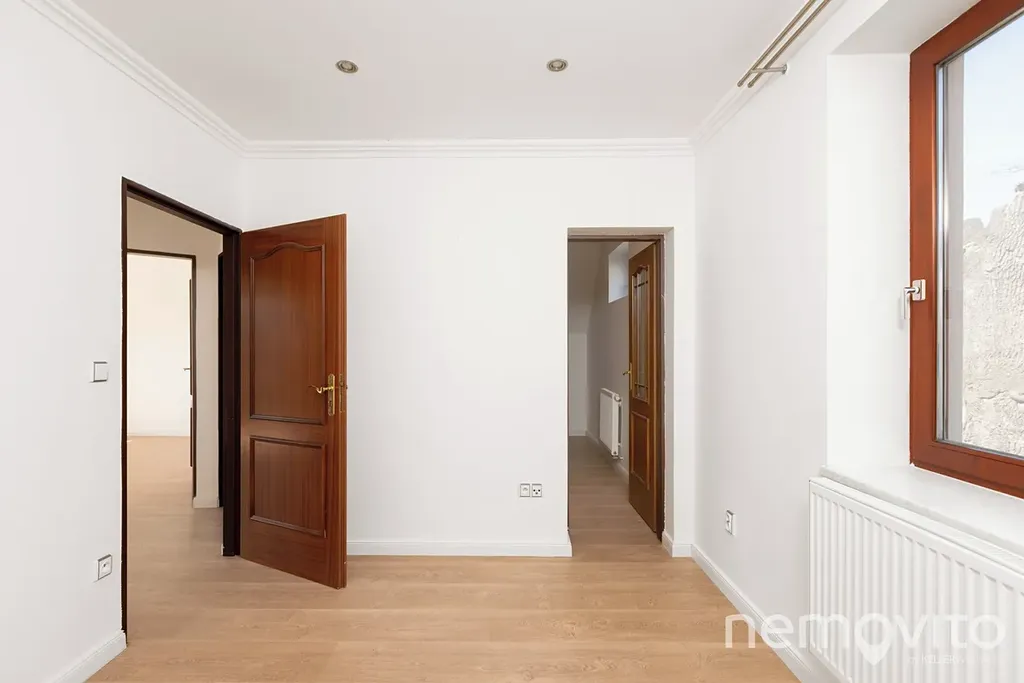 Horní podlaží tvoří 3 ložnice a nová koupelna. Velikosti pokojů jsou 10, 13 a 17 m2. Ve štítu domu je pak výstup na balkon (3 m2). Zahrada (971 m2 bez plochy domu) je sdílená a její rozdělení k užívání je možné dle dohody, nicméně k dispozici bude ta část, která náleží k levé či pravé polovině stavby. Nemovitost se nachází v lokalitě Zámostí, tedy zhruba 500 m pěšky od Jiřího náměstí. Okolí tvoří pouze několik domů, přičemž tento je ve druhé řadě od řeky Labe. Dům bude pronajat výhradně dlouhodobě, a to spolehlivému a prověřenému nájemci.