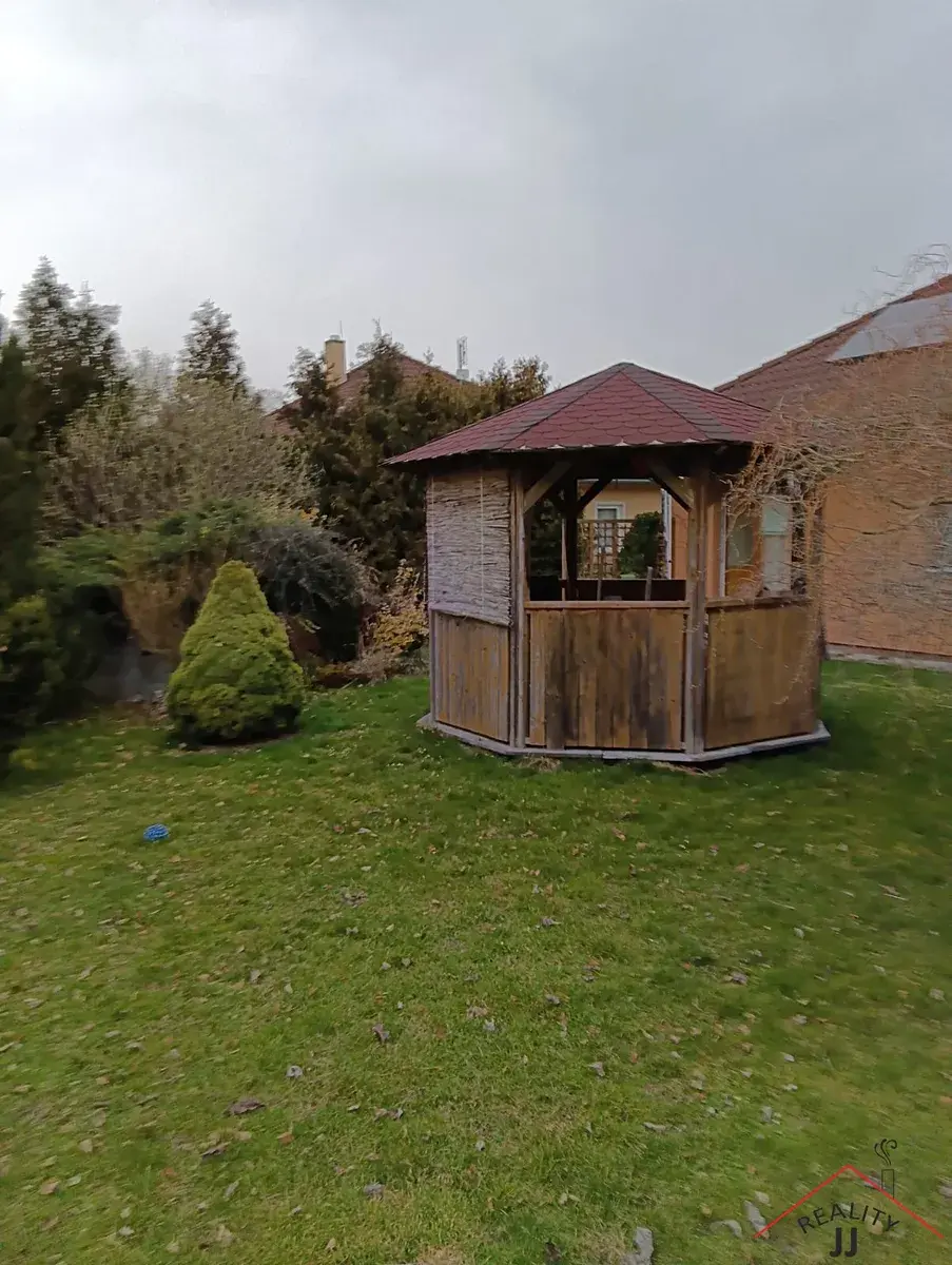 Další předností domu je velká a už velmi zarostlá zahrada , která poskytuje velmi příjemný odpočinek a stejně jako celý dům nabízí skutečně příjemnou atmosféru.. Na zahradě je altánek a velká garáž (20m2),s nájezdem, kde mohou parkovat další 2 vozy. V garáži je prostor pro malou dílnu, ke garáži patří také přístavek pro zahradní techniku.