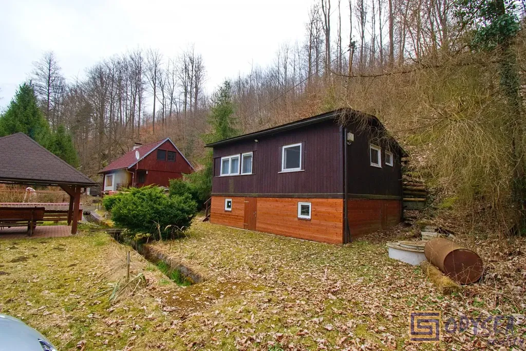 Exklusivně nabízíme prodej rekreační chaty o zastavěné ploše 44 m2 v krásné lokalitě Vítkov - Podhradí. Chata je dřevěné, zateplené konstrukce se zděnou podezdívkou. Je přízemní, prostorná - nachází se zde 3 pokoje (jídelna, obývací pokoj, ložnice), kuchyňský kout a koupelna s WC, pod celou obytnou částí jsou k dispozici úložné prostory (dřevník, skladovací prostor, technický kout s bojlerem na ohřev vody). Interiér chaty je udržovaný, dřevěné obložení bylo pravidelně lakováno, chata je elektrifikovaná (220 V) s rozvodem vody z vlastního zdroje (vrtaná studna s pitnou vodou), před cca sedmi lety byla na střeše položena nová krytina - lepenka. Pozemek je rovinatý, krom chaty se na něm nachází altán a několik jehličin, výměra zahrady je 430 m2. Součástí prodeje je i podíl 1/9 na společném pozemku (dalších 304 m2) - jedná se o travnatou plochu, která se nachází uprostřed této and #34;osady and #34;. Několik kroků od chaty je společná studánka s velmi kvalitní pitnou vodou. Celé údolíčko s nedalekou řekou působí velice romanticky (viz fotogalerie) - doporučujeme.