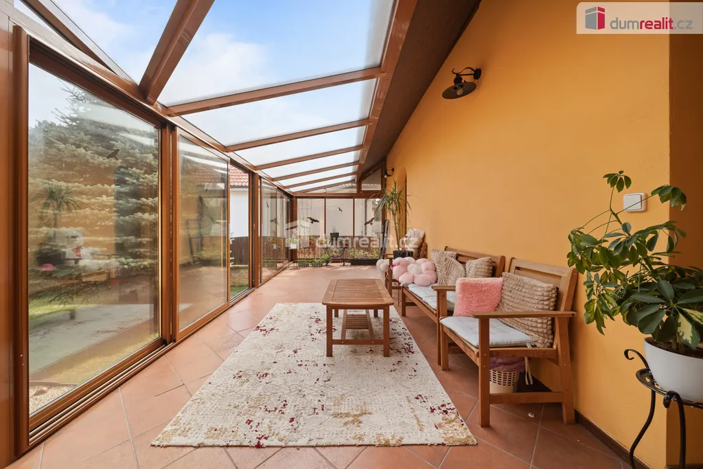 Dům stojí na zastavěné ploše 221m² s přilehlým pozemkem o velikosti 681 m². Na zahradě se nachází venkovní pergola s posezením ideální pro grilování a relaxaci. Samozřejmostí je garáž a navíc venkovní kryté parkovací stání. Součástí nemovitosti je zimní, krytá zahrada přístupná přímo z přízemí objektu.