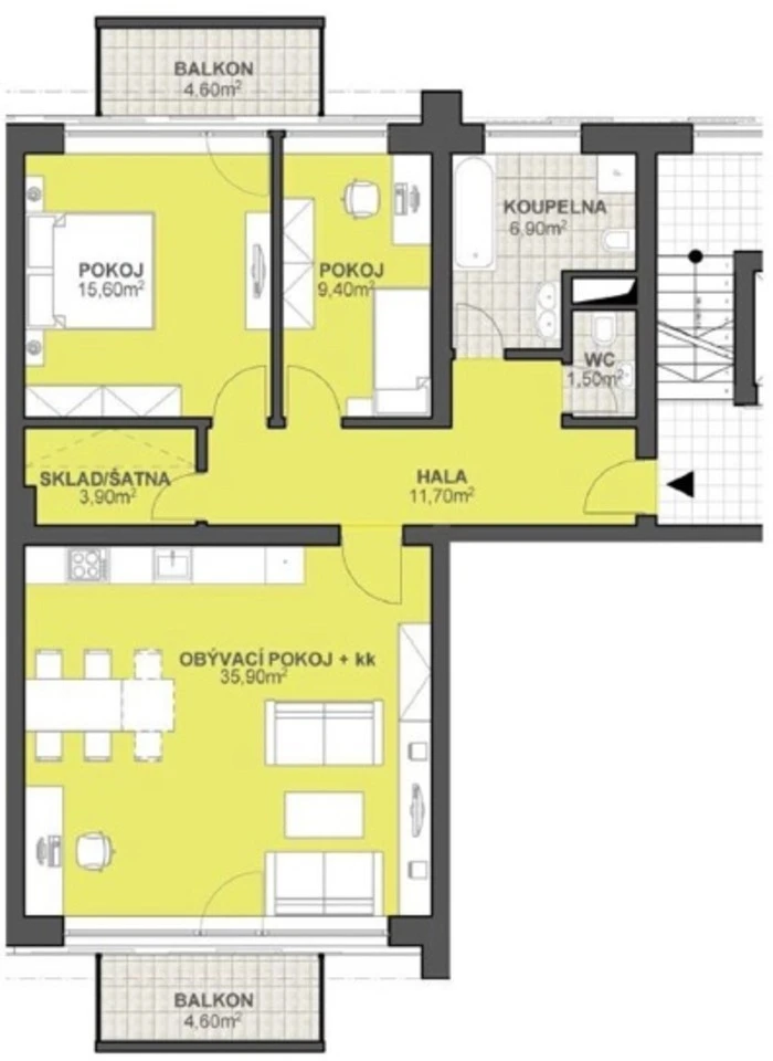 Pronájem 3+kk se dvěma balkony a prostorným sklepem na ulici Demlova Jihlava.
