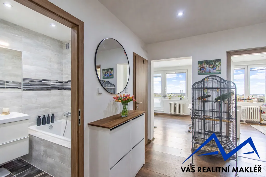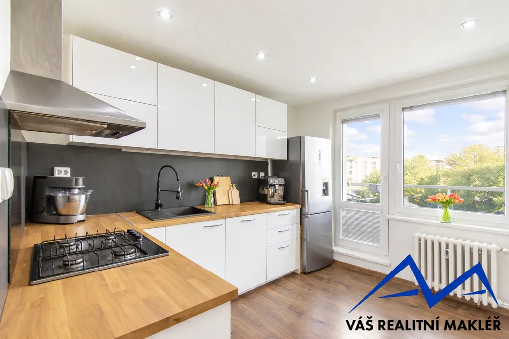 Byt o celkové výměře 70 m² prošel kompletní, nákladnou a velmi vkusnou rekonstrukcí. Interiér je laděn do teplých tónů dřeva, které působí příjemně a nadčasově. Dispozice nabízí neprůchozí pokoje a prakticky řešený prostor vhodný pro rodinné bydlení.