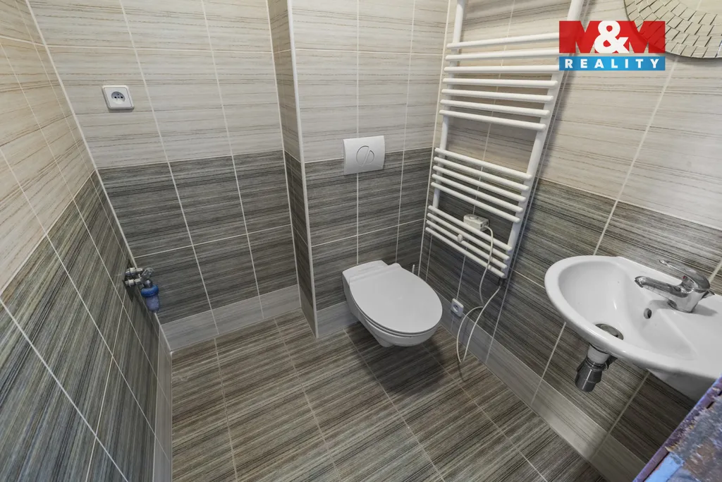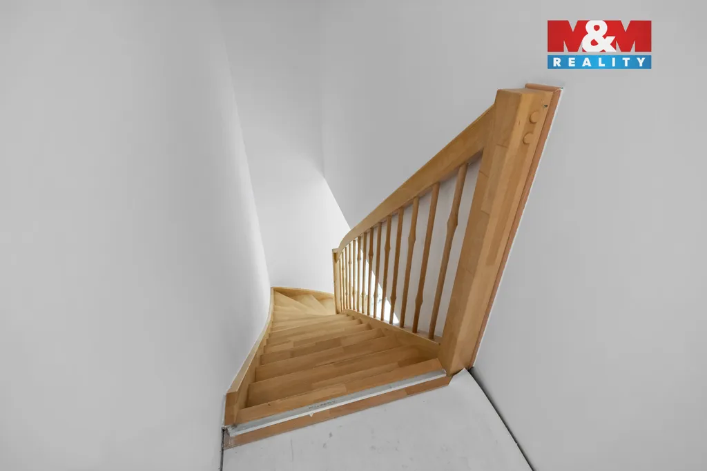 Přízemí tvoří obývací pokoj s kuchyňským koutem (29,5 m²) se vstupem na terasu (22 m²) s pergolou, dále WC, předsíň a technická místnost. V patře jsou dvě ložnice (18 m² a 12,5 m²) a koupelna s vanou a WC. Podkroví slouží jako úložný prostor. K domu náleží zahrada (50 m²) a 2 parkovací stání.