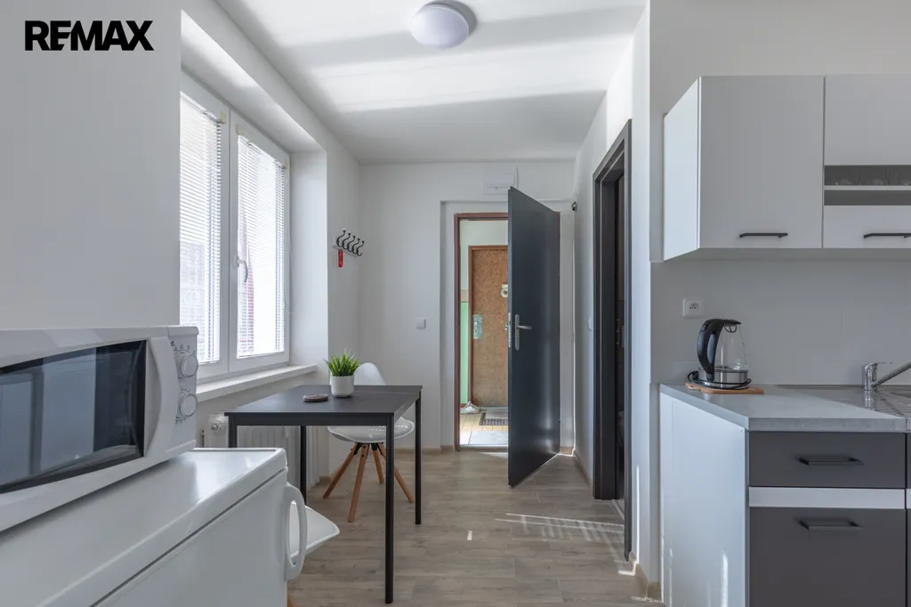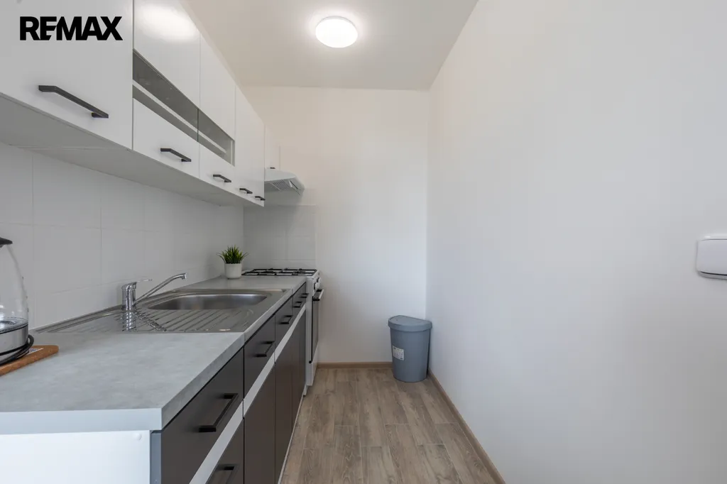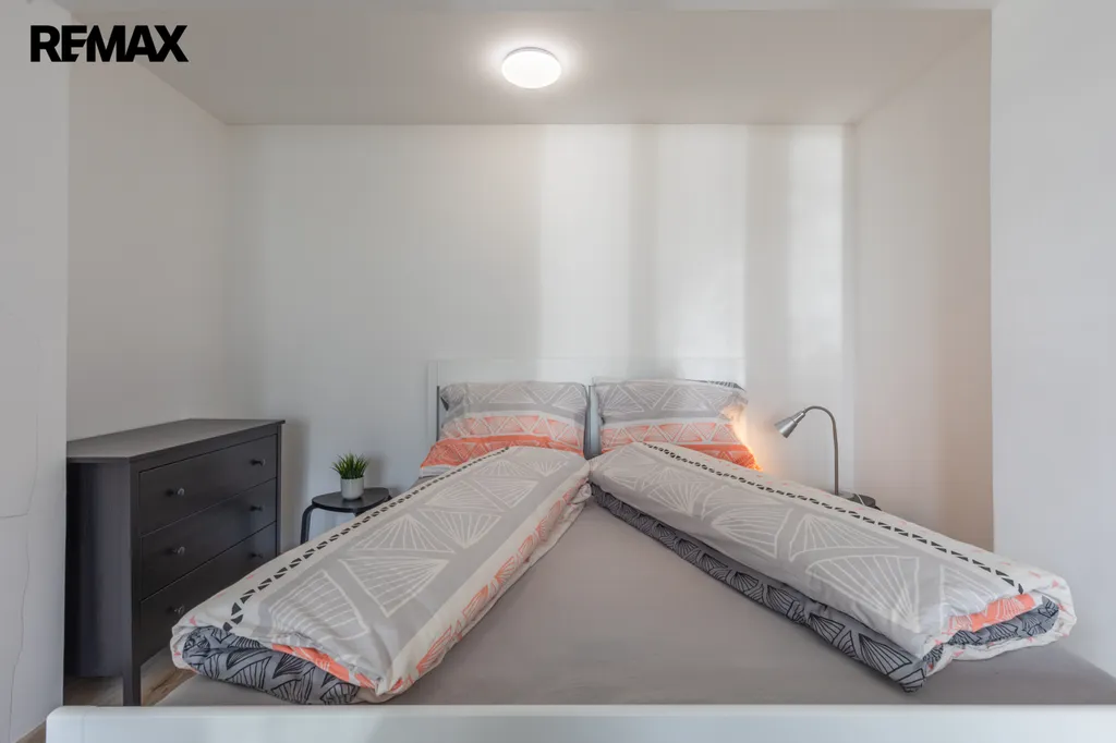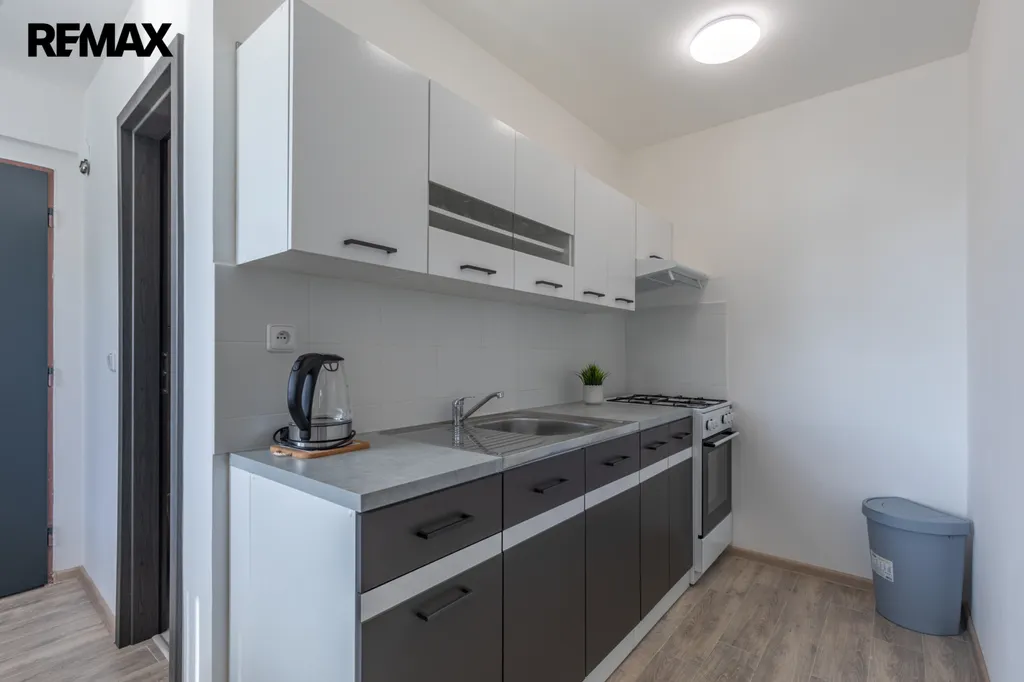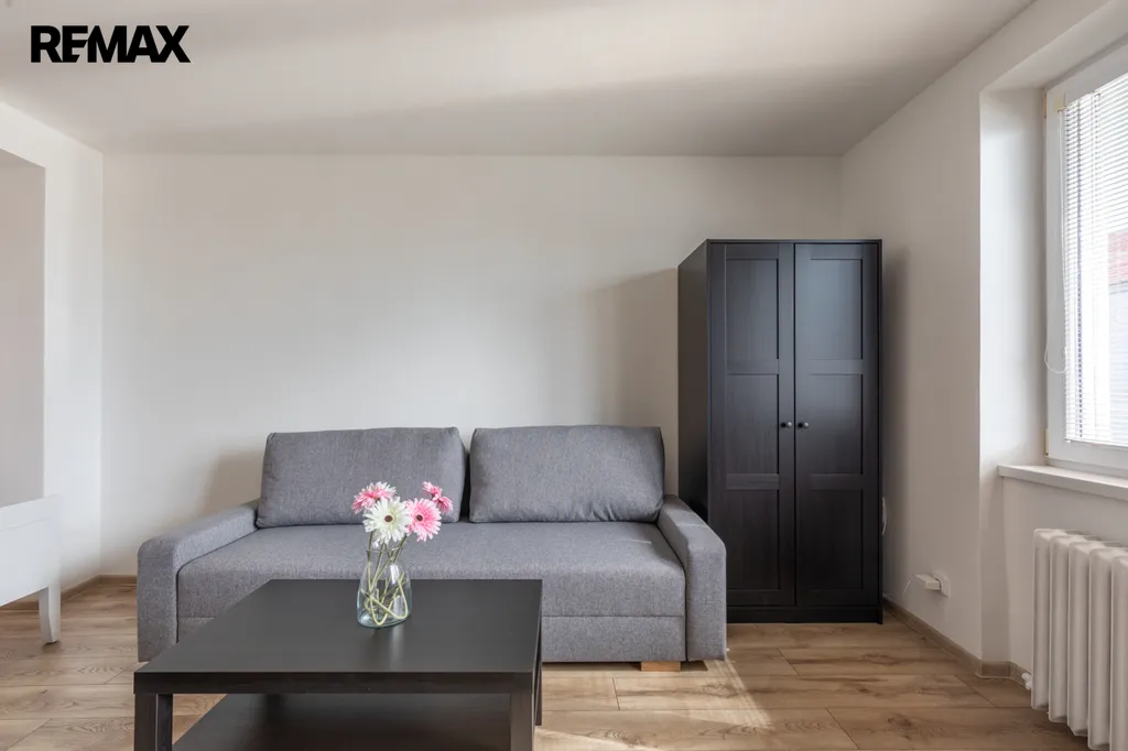 Byt zajišťuje nájemcům komfortní bydlení v příjemném novém interieru s novým vybavením: kuchyňská linka v praktickém rovném tvaru s volně stojíícm plynovým sporákem, digestoří, volně stojící MW troubou, v pokoji šatní skříň, pohodlné dvojlůžko, odkládací stolky, TV stolek s televizí, komoda, sedačka v šedé barvě, béžová koupelna se sprchovým koutem pro pohodlnou koupel, umývadlová skrříňka pro ukládání toaletních potřeb, na oknech žaluzie, podlahy - v pokoji plocoucí, v kuchyni a v předsíni dlažba. Vše zánovní, čisťoučké, voňavé, ihned k nastěhování. Součástí pronájmu je sklepní kóje hned za bytem.