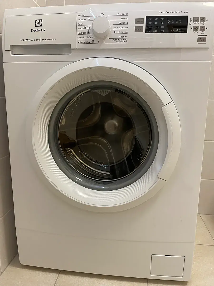 Koupelna je vybavena sprchovým koutem, zrcadlem s dotykovým světlem, topným žebříkem a pračkou Electrolux.