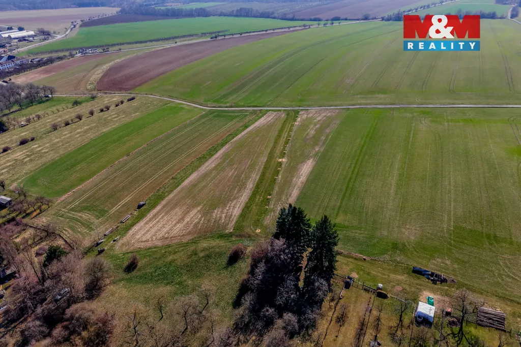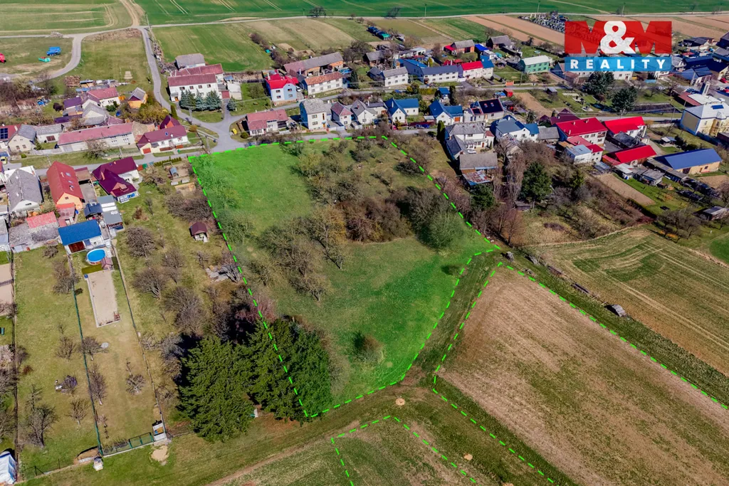1. Pozemek o výměře 7 780 m2, který se nachází v proluce mezi rodinnými domy. Z tohoto pozemku je 4 842 m2 dle územního plánu určeno k bydlení vesnickému (BV). Zde je možno umístit až 6 rodinných domů. Přístup po obecní zpevněné komunikaci. Elektřina na hranici pozemku, kanalizace vede v komunikaci, veřejný vodovod po druhé straně silnice.