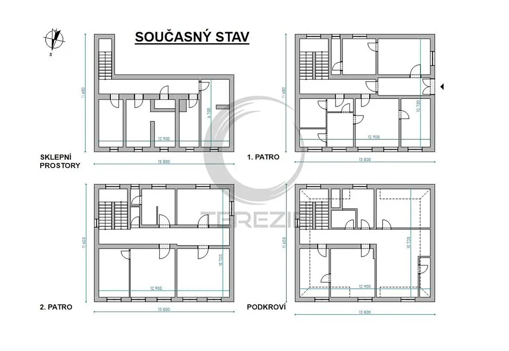 Dům má 2 plnohodnotná nadzemní podlaží, podkroví a je částečně podsklepený.