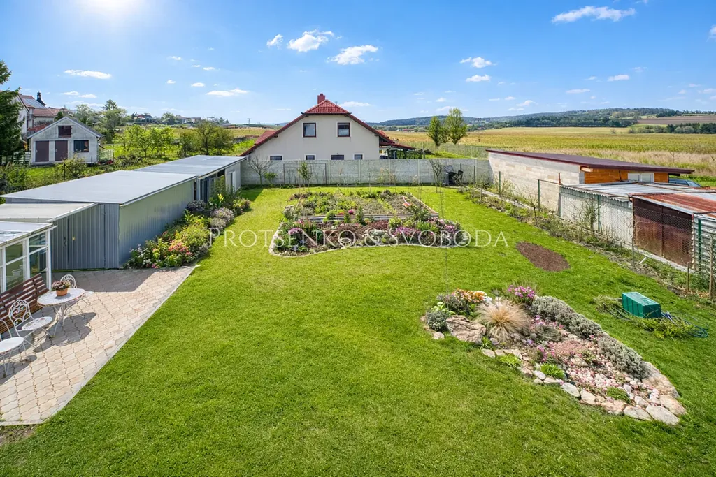 Srdcem domu je útulná obytná část propojená s výhledem do zahrady, která vytváří krásnou atmosféru naprostého soukromí a klidu. Velkou předností je právě udržovaná zahrada, která je skutečnou ozdobou celé nemovitosti. Nabízí dostatek prostoru pro odpočinek, rodinná setkání, pěstování i chvíle, kdy si chcete jen sednout na slunce a užít si ticho okolní krajiny. Součástí pozemku jsou také venkovní domky/vedlejší stavby, které poskytují praktický úložný prostor, zázemí pro zahradu, dílnu nebo další využití podle potřeb nového majitele.