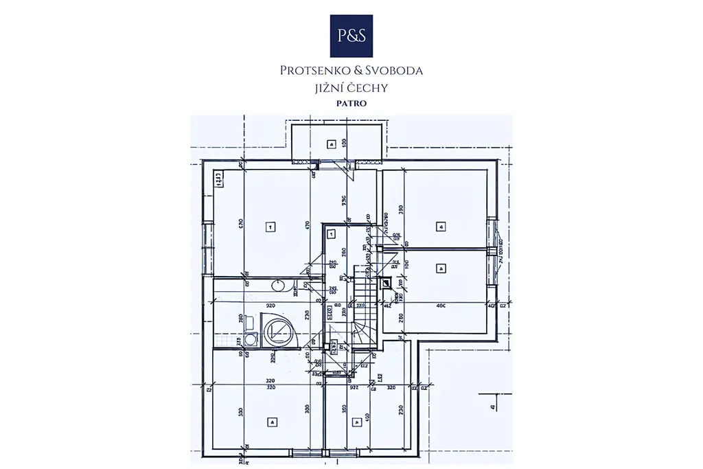 V patře je k dispozici koupelna a 5 pokojů, přičemž jeden z pokojů má vlastní balkon, který dodává prostoru další příjemný rozměr.