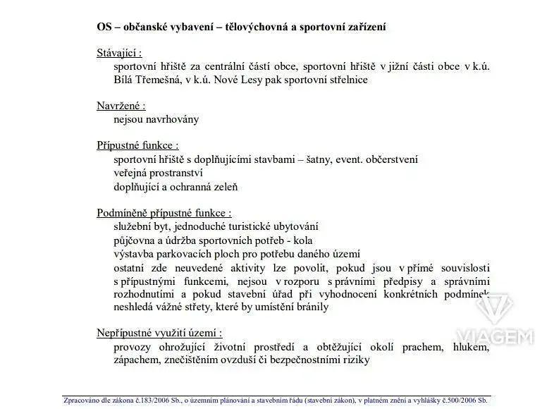 Pozemky jsou dle územního plánu vedeny jako plochy občanského vybavení - tělovýchovná a sportovní zařízení. Všechny možnosti využití naleznete v přiloženém výpisu z územního plánu.