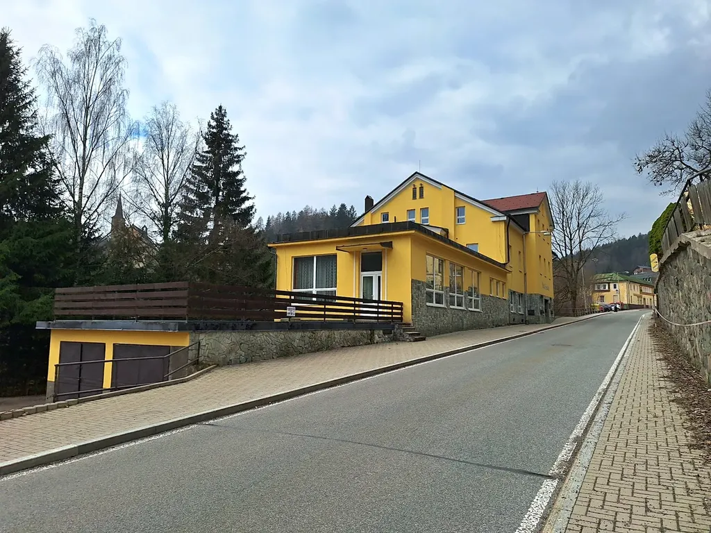 Prodej hotelu v Janských Lázních s pozemkem (1569 m2), Lázeňská ulice, 450 m od Lázeňské kolonády. Jedná se o pěti podlažní hlavní budovu hotelu (zastavěná plocha cca 745 m2) a přiléhající pozemek užívaný jako parkoviště. V budově je