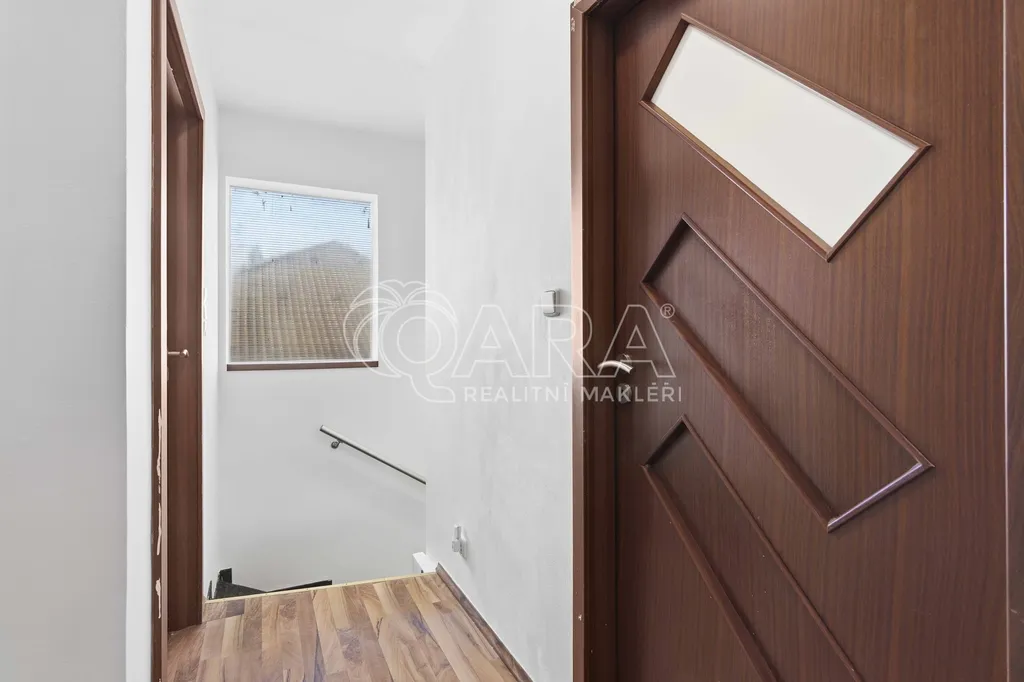 Druhou část domu o dispozici 3+kk tvoří obývací pokoj s kuchyňským koutem (cca 32 m2) a koupelnou s rohovou vanou a toaletou (cca 6 m2) a předsíň se schodištěm. Druhé nadzemní podlaží sestává ze dvou pokojů (cca 15,5 m2 a cca 17,5 m2)a koupelny se sprchovým koutem a toaletou (cca 6,2 m2). Ze dvou pokojů je vstup na společný balkon. V obývacím pokoji s kuchyňským koutem zavedeno podlahové vytápění, v ostatních prostorech instalovány radiátory.