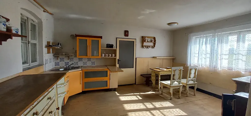 Prodej chalupy v Jezercích u Stříbra. Chalupa je ve stavu k rekonstrukci, aktuální dispozice 2+kk, nicméně lze ji s omezeními využívat ihned především k rekreaci - zavedena elektřina,obecní vodovod,topení řešeno kamny Petra,wc chemické. Stavba je rozdělena na obytnou část,dílnu a garáž. Půda je pochozi, vstup je mimo obytnou část po dřevěných schodech.