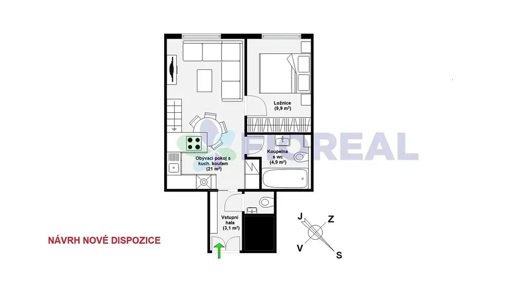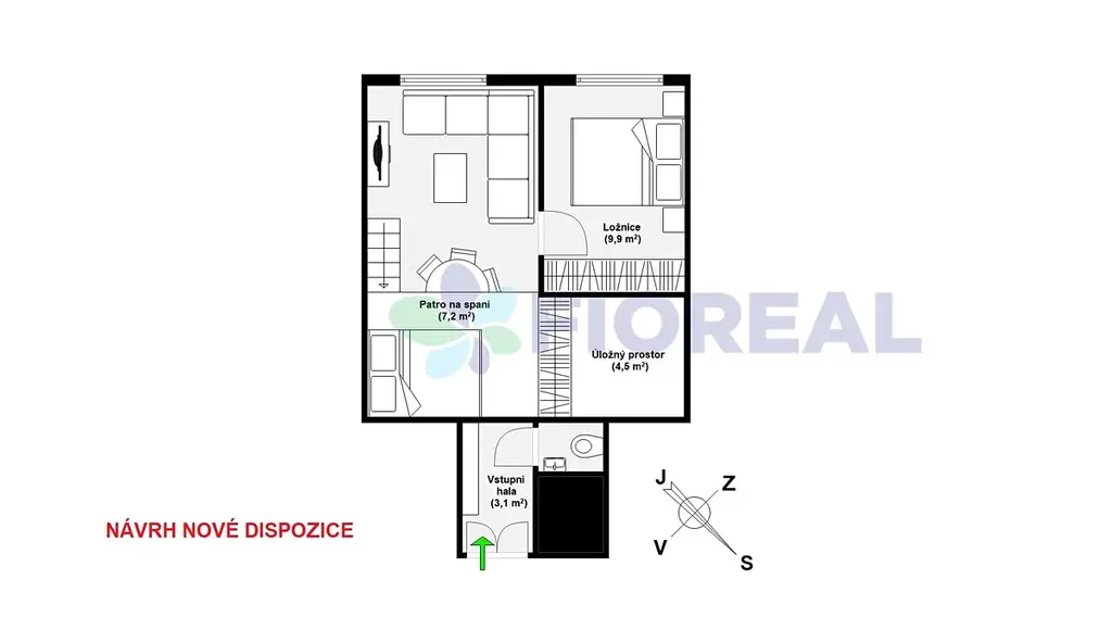 Sám o sobě byt nabízí zajímavou příležitost i potenciál v podobě přestavby na chytře řešenou dispozici 3+kk (se spacím patrem) pro potřeby rodiny (viz. dispoziční plánek ve fotogalerii včetně vizualizací budoucího stavu po úpravě).