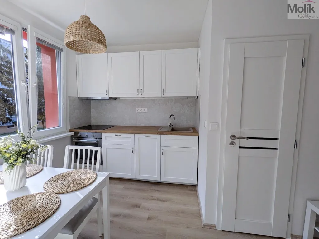 Byt se nachází ve zvýšeném přízemí (1. nadzemním podlaží) domu bez výtahu. Tento měsíc byla dokončena kompletní rekonstrukce, která zahrnovala výměnu rozvodů elektřiny a odpadů, renovaci zdí, stropů i podlahových krytin (vinyl), instalaci kuchyňské linky na míru (se zabudovanou myčkou, indukční varnou deskou ,horkovzdušnou troubou a výsuvnou digestoří), nové dveře včetně obložek a rekonstrukci koupelny a WC. Byt je velmi krásný a světlý, nabízí hezký výhled na okolní zeleň. Díky své poloze poskytuje příjemnou a klidnou atmosféru. V docházkové vzdálenosti 5-10 minut se nachází Zámecká zahrada, sportovní areál Bažantnice, rybník Leontýna i centrum města.