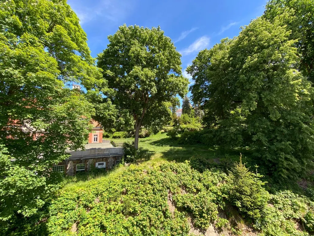 Budova je obklopená zeleně a v blízkosti domu je nádherný park, což nabízí vyníkající možnost procházek a sportování na přírodě na věžím vzduchu.