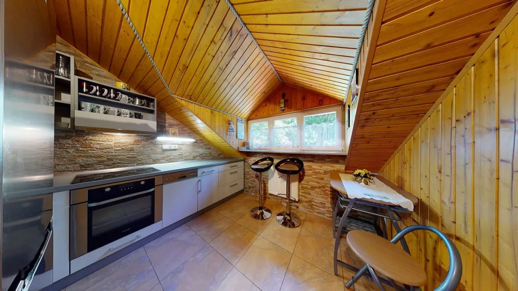 Byt se skládá z předsíně, obývacího pokoje s krbem, kuchyně, ložnice, koupelny s rohovou vanou a wc.