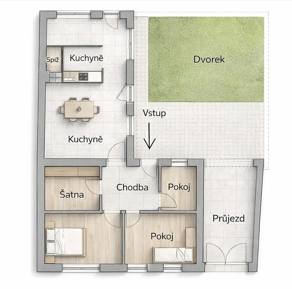 Kyjov je vyhledávané město s kompletní občanskou vybaveností a výbornou dostupností do okolních měst. Umístění domu v blízkosti centra zajišťuje výbornou dostupnost služeb i vysoký investiční potenciál.