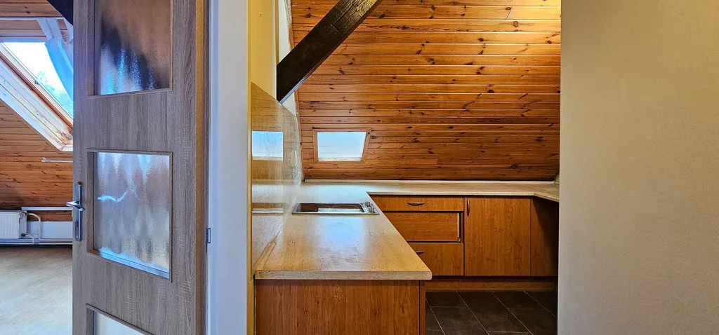 Jednotka byla v tomto roce rekonstruovaná – koupelna s WC je zcela nová, ostatní prostory renovované. Podkrovní řešení vytváří plnohodnotnou obyvatelnou jednotku s příjemnou atmosférou.