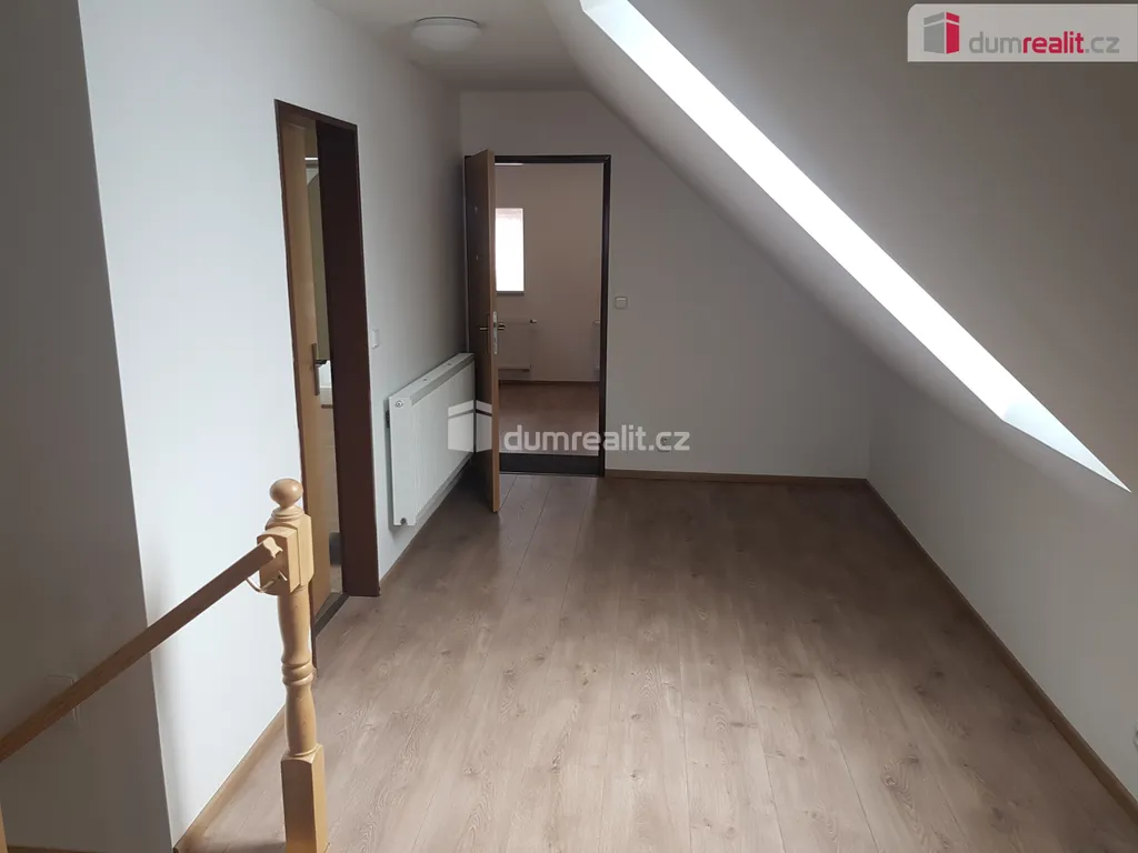 Dispozice domu: v přízemí se nachází komunikační chodba, kuchyň spojená s prostorným obývacím pokojem, kuchyňská linka je osazena spotřebiči jako: vestavěná trouba, varná deska a digestoř. V obývacím pokoji se taktéž nachází krbová kamna a jako druhá varianta je zde nainstalovaný elektrický kotel, koupelna s vanou, sprchovým koutem a WC, dále pak další větší pokoj, ze kterého lze vyjít ven. V patře jsou dva pokoje, koupelna vybavena sprchovým koutem, umyvadlem a WC. Po celém domě jsou nové plovoucí podlahy, nová plastová okna se žaluziemi. Před domem je zahrada, nemovitost se nachází v klidné a nerušené části Horní Bousov. V nedalekém Dolním Bousově je veškerá občanská vybavenost (vlakové nádraží, škola, školka, potraviny, pohostinství ) Veškeré informace k nemovitosti Vám velmi rád sdělím telefonicky či osobně při prohlídce. Neváhejte mě kontaktovat. Budu se těšit na viděnou při prohlídkách. Ev. číslo: 655303.