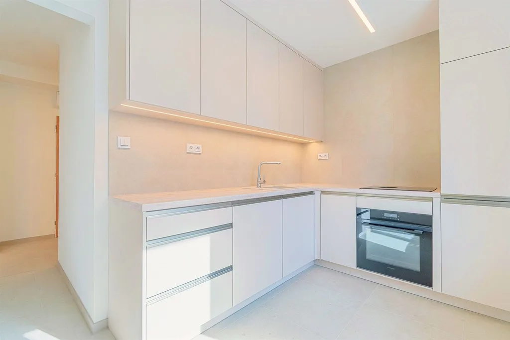 Byt je čertvě po celkové zdařilé rekonstrukci nová rohová kuch. linka na míru vč. kvalitních značkových spotřebičů (varná indukční deska s vestavěným odtahem par, myčka nádoví vestavná, vestavná lednice s mrazákem), nové vinylové podlahy a dlažby (koupelna a WC), nové rozvody elektřiny a vody a odpadů, nově i stropní SDK podhledy s LED osvětlením, kompletně nová sanita (WC závěsné, sprchový kout, umyvadlo). V případě zámu je k dispozici použitá pračka (prostor na pračku v koupelně).
