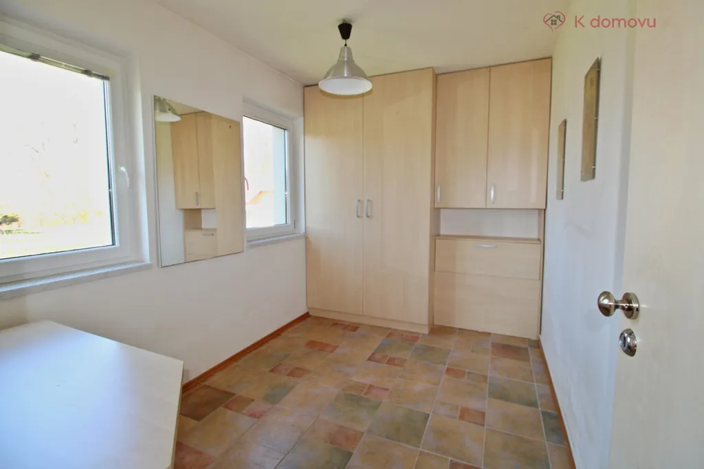 Hlavní obytná místnost navazující na kuchyňský kout tvoří jádro domu. Z prostorného obýváku je vstup do dvou samostatných pokojů a koupelny spojené s WC. Vně domu se nachází dílna.