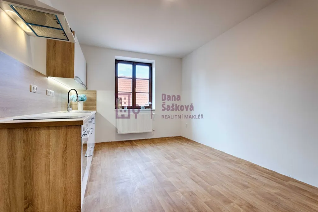 Pronájem bytu o podlahové ploše 23 m2 v prvním patře historického domu bez výtahu na náměstí Míru, Jindřichův Hradec.